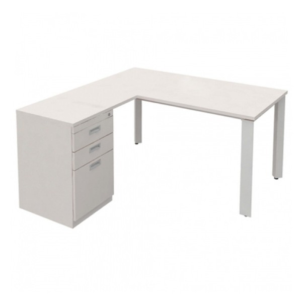 Bàn TV1414SL1 hình chữ L hiện đại có mặt bàn màu trắng nhẵn kết hợp chân kim loại chắc chắn mang lại sự thanh lịch và bền bỉ. Hộc tủ 3 ngăn tiện dụng giúp lưu trữ tài liệu gọn gàng, đáp ứng nhu cầu làm việc hiệu quả.