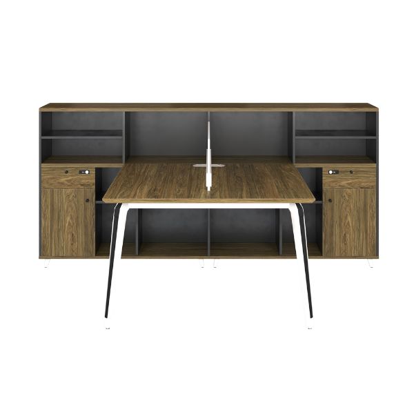 Sự kết hợp giữa màu nâu vân gỗ với trắng và đen đã tạo nên một sản phẩm hiện đại và sang trọng. Từ đó hỗ trợ tạo điểm nhấn cho không gian làm việc tại văn phòng.