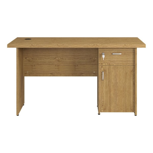 Không chỉ là bàn làm việc thông thường, sản phẩm này còn được trang bị thêm một hộc tủ liền sát đất với 1 ngăn kéo và 1 cánh cửa mở.